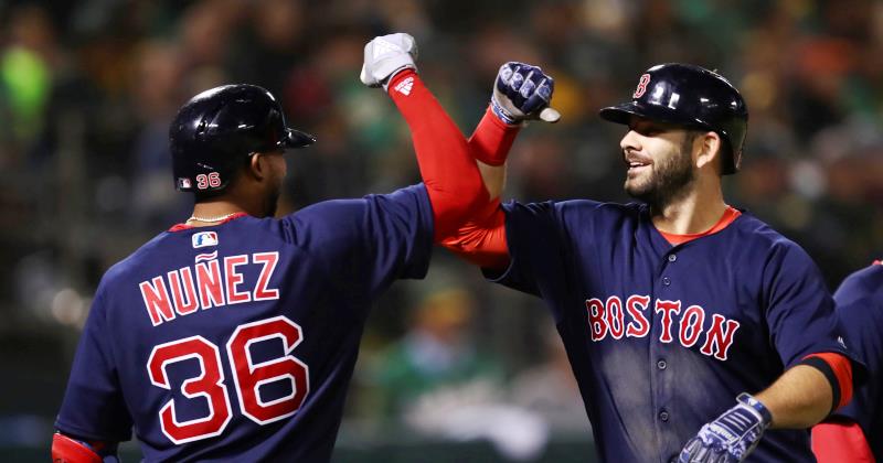 Mitch Moreland pegó un grand slam, Jackie Bradley Jr. disparó un jonrón de tres carreras y los unos Medias Rojas