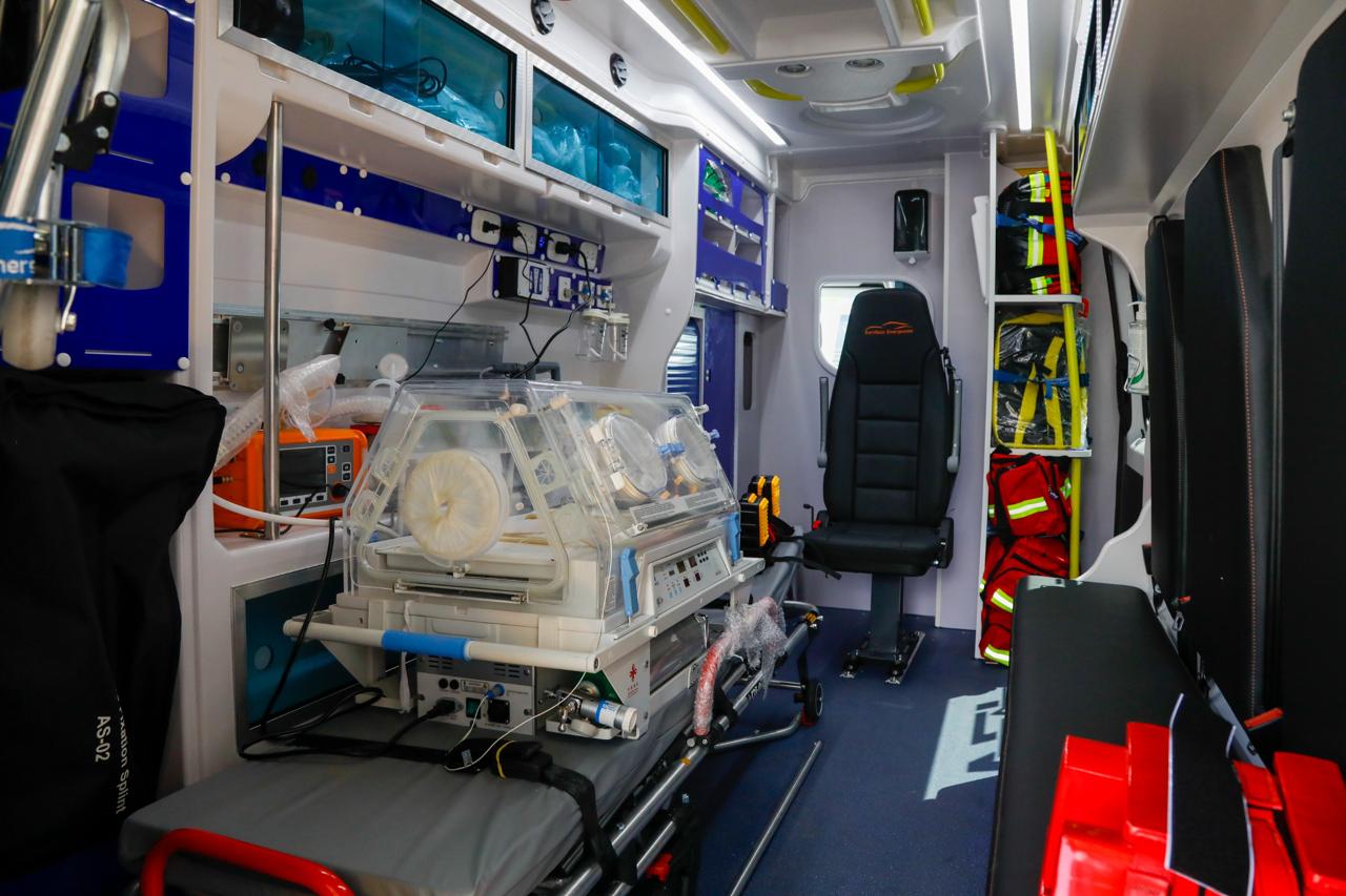 Además, los vehículos especializados están reforzados con equipamiento médico moderno, sistema completo de oxígeno medicinal, monitor-desfibrilador bifásico con marcapasos transcutáneo y multiparámetros de monitoreo, pulsioxímetro digital, glucómetro portátil, equipos de succión eléctrico y manual, chalecos de inmovilización tipo Kendrick, kits de control de sangrado con torniquetes, nebulizadores para adultos y pediátricos.