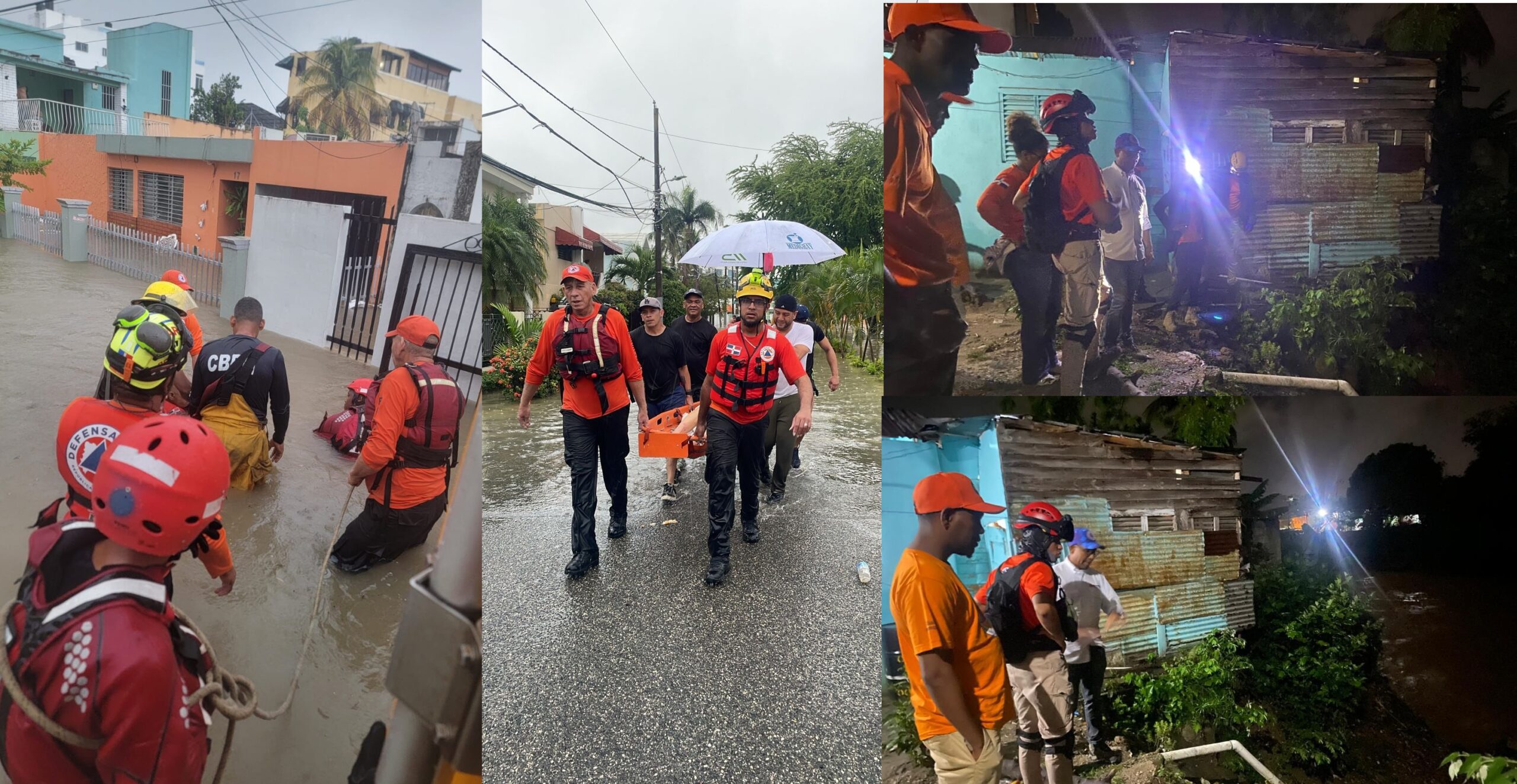 Santo Domingo.- Rescatistas de la Defensa Civil Dominicana realizan desde este martes y la madrugada del miércoles, labores preventivas y de respuesta en las zonas afectadas por las lluvias, provocadas por una vaguada en altura que incide sobre el país.