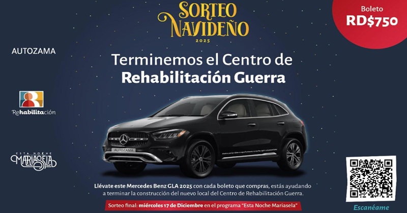 Será a beneficio del Centro de Guerra Santo Domingo, R. D. – Rehabilitación anunció el inicio de la venta de boletos para su tradicional Sorteo Navideño, que este año tiene como atractivo una jeepeta Mercedes Benz GLA 2025, donada por Autozama y valorada en US$70,000, iniciativa que busca recaudar fondos para culminar la construcción del nuevo […]