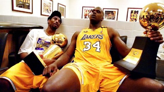Kobe Bryant y Shaquille ONeal fueron compañeros en Los Angeles Lakers de 1996 a 2004. Ganaron tres campeonatos conseutivos de
