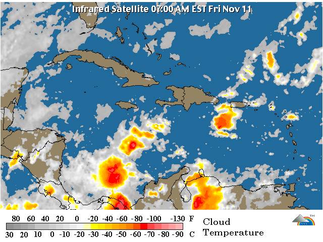 Una vaguada localizada sobre el Canal de la Mona, asociada a la tormenta tropical Sean, provocará aguaceros dispersos con aisladas