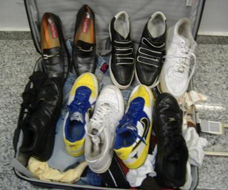 La Dirección Nacional de Control de Drogas (DNCD) ocupó dos maletas llenas de zapatos tipo tenis, todos con las plantillas